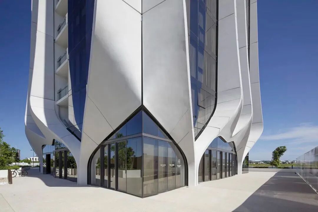 The Lanes 公寓,也称美人鱼湾湖畔公寓,位于澳大利亚黄金海岸上一个显眼的拐角位置,其富有艺术感的造型,调和了沿海高层建筑与内陆本土建筑之间的矛盾。四座塔楼住宅用流动的建筑语言模仿大地的轮廓和植物的生长,在城区与 Unity 湖的景观之间起到了平衡的作用,建筑结构在立面上得以体现。